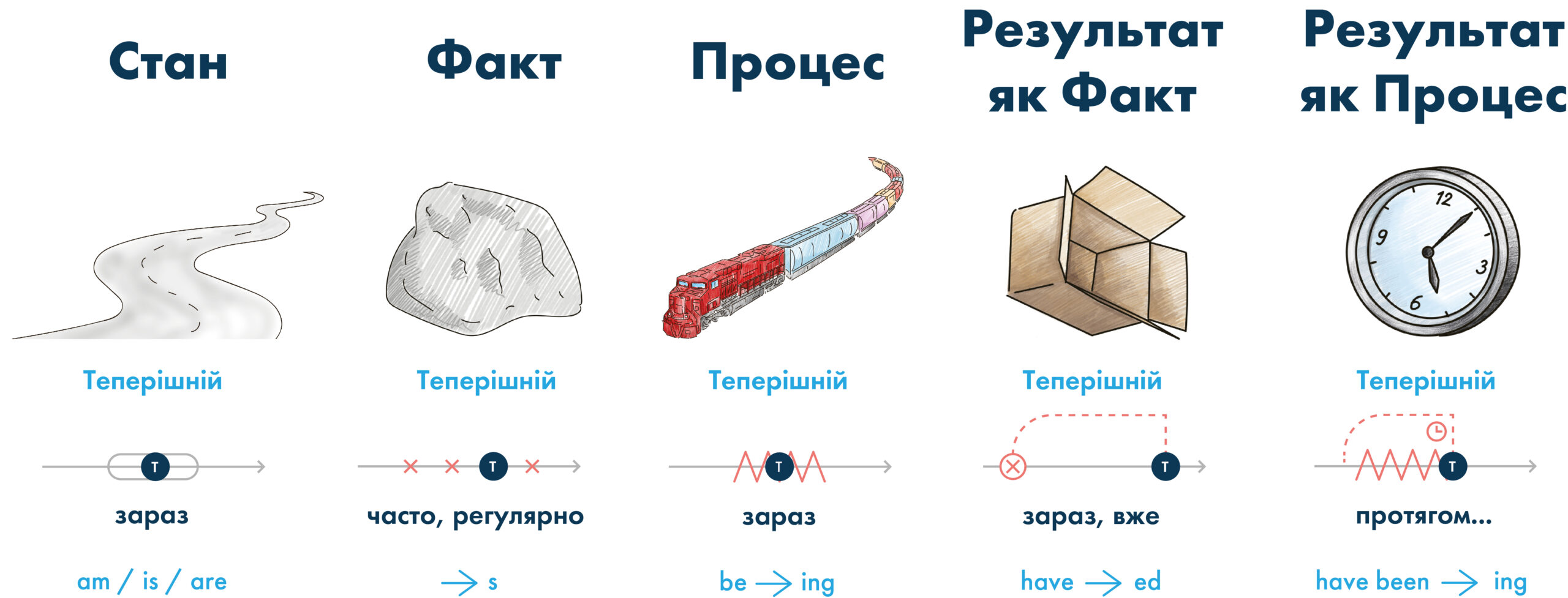 Аспекти часів англійського дієслова. Розшифровка Картини Часів.